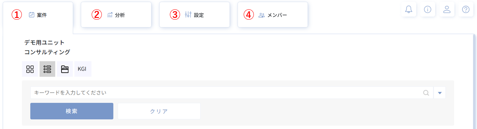 | 詳細 | 案件詳細画面へ遷移します。詳細はこちらの記事をご参照ください。 案件詳細画面の使い方 |