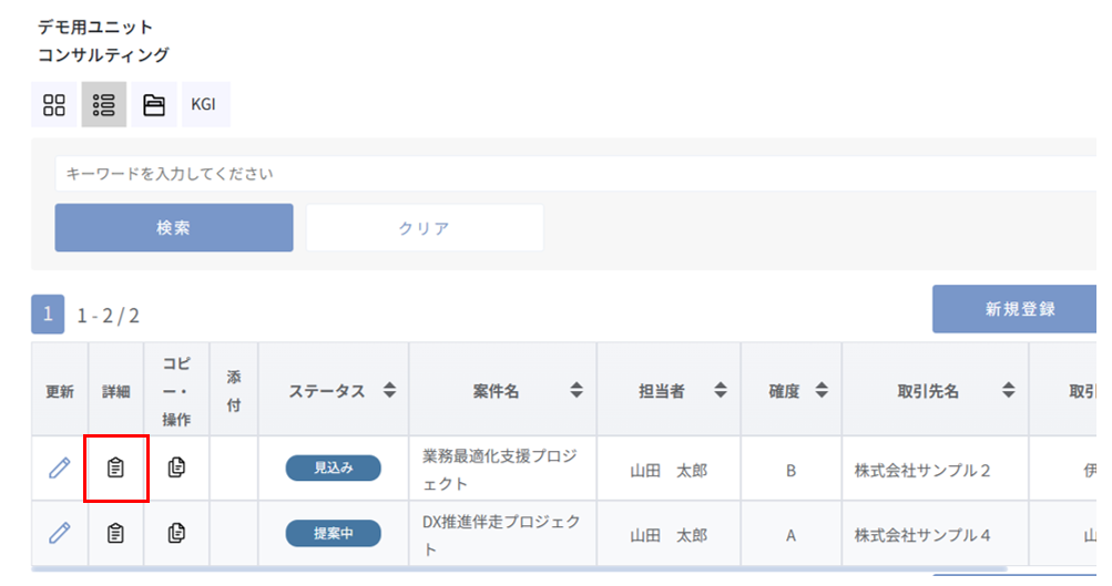 02.案件カードをダブルクリックします。または、案件カードのハンバーガーメニュー「案件詳細確認」をクリックします。